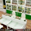 Bên cạnh đó, mặt kính của tủ cũng mang tới vẻ đẹp sang trọng, đẹp mắt. Hệ tủ cũng được sơn xanh đan xen với màu trắng tạo nên độ tương phản dịu nhẹ và lịch sự.