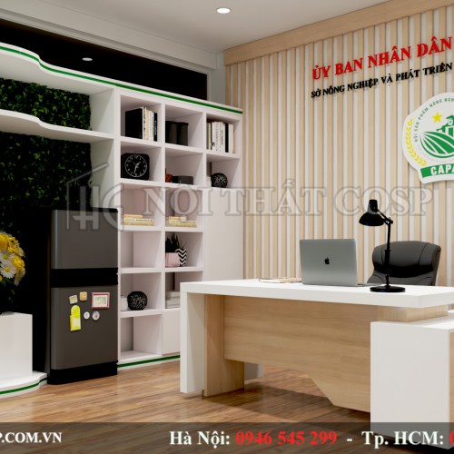 Cuối cùng phải kể đến khu vực bàn làm việc của nhân viên cũng được thiết kế khá nổi bật. Chiếc bàn có kiểu dáng hiện đại, cách điệu.