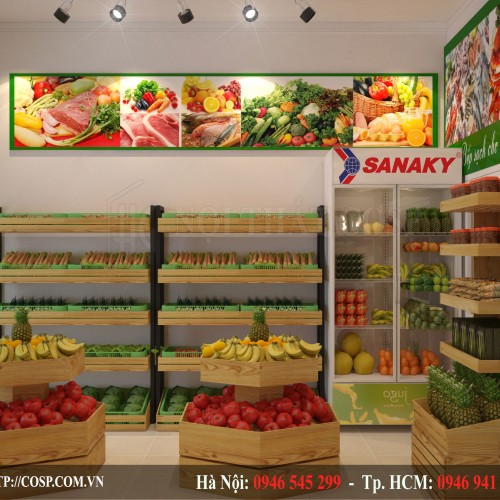 Phía trên kệ được sử dụng những tấm biển bảng về thực thẩm tươi sống tạo cho không gian thêm sức sống, đẹp mắt, tạo cảm giác tươi mới cho những thực phẩm đang bày bán trên kệ.