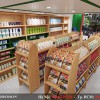 Gian bên trái bày bán các mặt hàng củ quả cũng được chúng tôi sử dụng hệ thống kệ gỗ thông ghép thanh nhưng với kiểu dáng khác, phù hợp với mặt hàng.