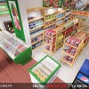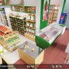Khác với gian ngoài, 2 gian trong sử dụng màu sơn tường là màu trắng. Kết hợp với màu tường xanh của gian ngoài đem lại sự hài hòa về màu sắc của không gian cửa hàng, đem lại sự thân thiện, sạch đẹp và gọn gàng của một cửa hàng thực phẩm sạch.