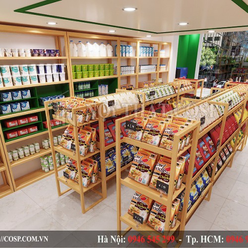 Với một cửa hàng bày bán thực phẩm sạch thì sự gọn gàng là một yếu tố quan trọng trong cách bố trí nội thất.