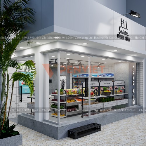 - Dự án: Thiết kế cửa hàng trái cây nhập khẩu Hàng Xóm
