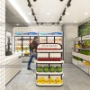 Cửa hàng trái cây nhập khẩu Hàng xóm có diện tích không lớn, chỉ 25m2 nên KTS của Penviet đã lựa chọn gam màu xám trắng để thiết kế shop này. Sắc màu này không những tạo cảm giác về một không gian rộng lớn hơn mà nó còn giúp các mặt hàng trái cây đa dạng màu sắc càng trở nên nổi bất và nhìn hấp dẫn hơn.