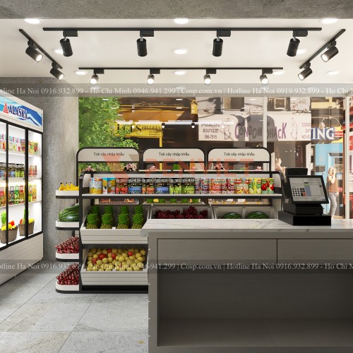 >>> Xem thêm: Thiết kế cửa hàng hoa quả, bánh kẹo nhập khẩu KA Mart