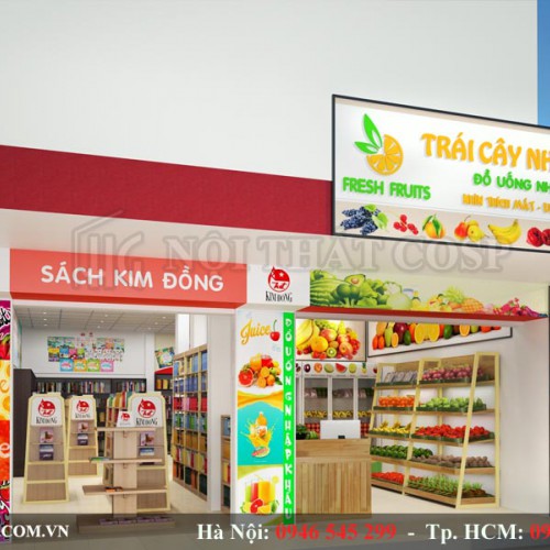 Thiết kế nội thất shop hoa quả sạch, cửa hàng sách