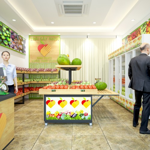 Anh Quyết đã trao đổi với những kiến trúc sư của NỘI THẤT COSP để tạo ra một không gian bày bán những loại trái cây sạch này.