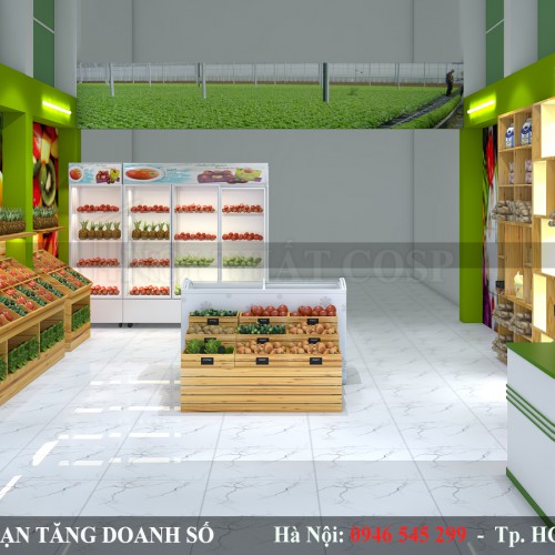 Với mong muốn cung cấp cho khách hàng những loại hoa quả, thực phẩm sạch, Anh Trường đã mở cho mình một không gian nội thất shop hoa quả sạch với sự giúp sức của nội thất cosp.
