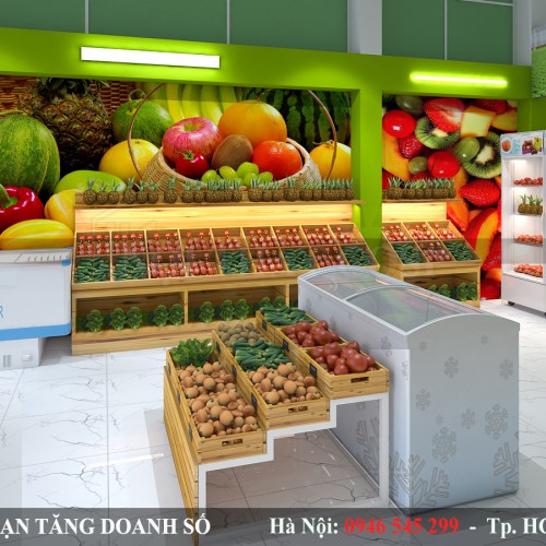 Đảm bảo số lượng sản phẩm được bày bán mà phần không gian đi lại vẫn được đảm bào. Mang đến sự thoải mái cho khách hàng mà ho lại có thể dễ dàng nhanh chóng lựa chọn được loại hoa quả mà họ muốn mua.