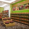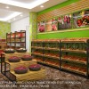 Hàng loạt chiếc kệ gỗ với những khay đựng đồ linh hoạt được thiết kế cho không gian shop trái cây Anh Sang.