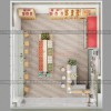 KTS đã lựa chọn gỗ làm chất liệu chính cho thiết kế nội thất shop hoa quả với màu gỗ khá sáng, từ trần, sàn đến các kệ trưng bày. Phần trần thiết kế thạch cao, khung sơn màu trắng, lam trần bằng nhựa gỗ với hệ thống đen downlight âm trần 7w. Trần được chia làm 4 phần bằng nhau, xen kẽ 2 màu gỗ khá lạ mắt. Sàn ốp nhựa giả gỗ với màu gỗ sáng, khiến không gian sạch sẽ và sáng sủa hơn. Hệ thống kệ sử dụng gỗ công nghiệp và các khung sắt có sơn tĩnh điện.