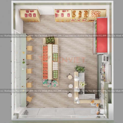 Tham khảo thêm: Thiết kế cửa hàng rau củ quả Neco Mart