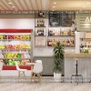 Bố cục của không gian được sắp xếp logic và thuận tiện cho khách hàng. Kệ trưng bày sẽ đặt ở giữa và phần tường đối diện với cửa ra vào. Khu bàn ngồi cho khách hàng thưởng thức đồ uống sẽ ở bên tay trái, phần mặt kính còn lại. Quầy pha chế sẽ ở bên tai trái. Nhìn không gian đã thấy thu hút và muốn đến ngay quán để trải nghiệm.