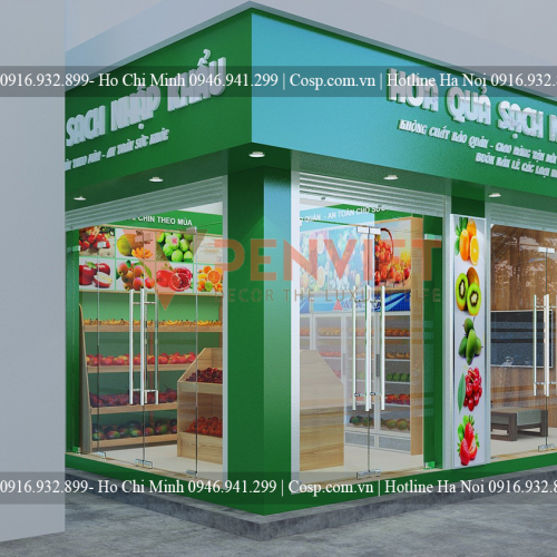 Trước khi đi đến những nét chính, chúng tôi xin giới thiệu 1 chút về công ty nhe. Nội thất Cosp là đơn vị thiết kế thi công nội thất shop, cửa hàng, nhà hàng, siêu thị, nhà thuốc, các showroom hoặc spa- thẩm mỹ viện... thuộc PENVIET. Trong lĩnh vực thiết kế shop trái cây, rau, quả sạch thì chúng tôi hoàn toàn tự tin để mang lại cho khách hàng những cửa hàng tiêu chuẩn nhất, thu hút nhất.