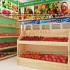 Bên không gian này rất tươi tắn vì đây là nơi trưng bày hoa quả chính. Nội thất shop trái cây gồm Kệ đôi trưng bày 2 tầng , Kệ trưng bày sát tường 4 tầng, Khung hộp gỗ gắn tranh hoa quả đều được làm bằng gỗ MDF cốt Thái phủ Melamine chống ẩm, các đợt được làm bằng gỗ MDF.