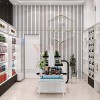 Hiện trạng phía sau quầy thu ngân là một mảng tường trống, bởi vậy Penviet đã sử dụng vách lam nhựa giả gỗ để không gian trở nên đồng bộ và có tính thẩm mỹ hơn. Không những vậy, vách lam này còn mang tới hiệu quả trang trí và làm nổi bật logo thương hiệu bằng chất liệu mica dán alu vàng gương đẹp cuốn hút.
