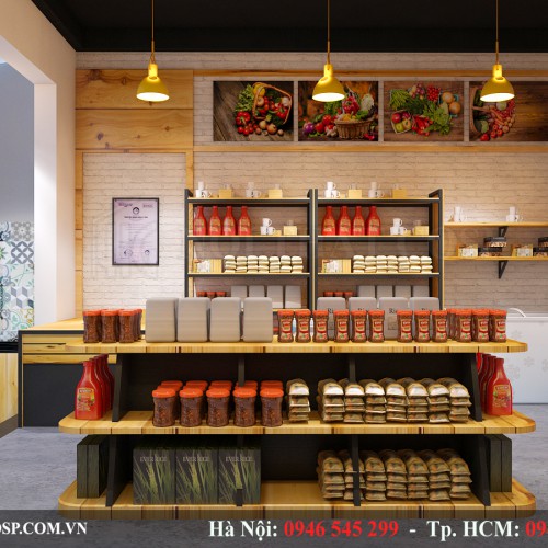 Với chất liệu chính là Thông công nghiệp, sắt sơn tĩnh điện màu đen., không gian shop thực phẩm Chị Dung trở nên thân gần với khách hàng hơn bao giờ hết.