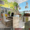 Các thanh gỗ thông tự nhiên được ghép lại với nhau thành những kệ trưng bày sản phẩm mang tới cảm giác mộc mạc, gần gũi rất phù hợp đối với những shop chuyên cung cấp các sản phẩm thực phẩm sạch.