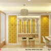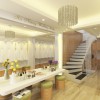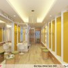 Các tủ đồ và ốp tường đều sử dụng màu vàng làm nổi bật nét trẻ trung, nhưng cũng đem tới cảm giác sang trọng. Tầng 2 được sử dụng làm khu vực trưng bày chính kết hợp trang điểm.