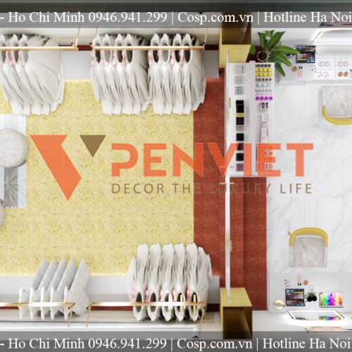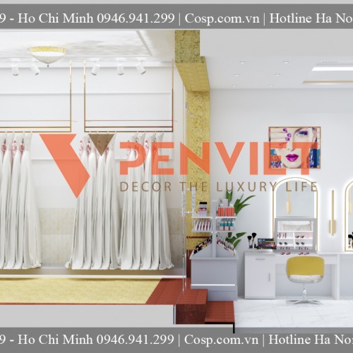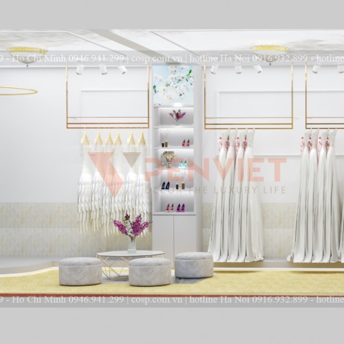 Những cô dâu tương lai sẽ được khoác lên mình bộ áo cưới màu trắng bồng bềnh giống như những nàng công chúa bước ra từ câu chuyện cổ tích vậy. Do đó, Nội thất Penviet cũng muốn tạo nên một không gian làm tôn vinh lên được vẻ đẹp trong trắng của người con gái trong ngày trọng đại của cuộc đời nên kiến trúc sư đã quyết định sử dụng tông màu trắng để thiết kế cửa hàng.
