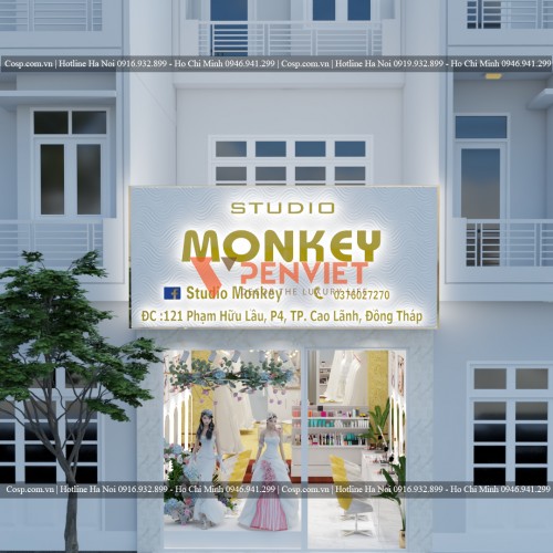 Thiết kế mặt tiền cửa hàng áo cưới Studio Monkey