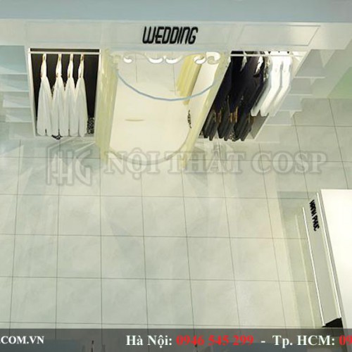 Sử dụng giá, kệ trưng bày áo cưới để tăng thêm vẻ đẹp cho sản phẩm