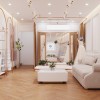 Thiết kế không gian sang trọng, thanh lịch bằng tông màu chủ đạo là trắng kết hợp với vàng đồng
