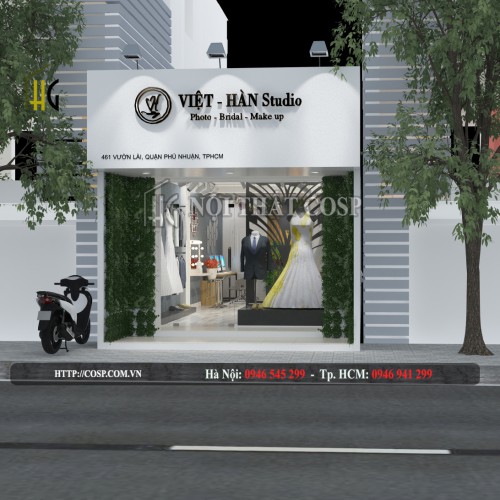 Thiết kế mặt tiền shop áo cưới Việt - Hàn Studio
