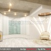 Mặt tường được sơn trắng toàn bộ giúp gợi mở không gian và tạo nên sự sang trọng. Kết hợp với mặt trần xám ghi cực kì nổi bật với sự tương phản có được.