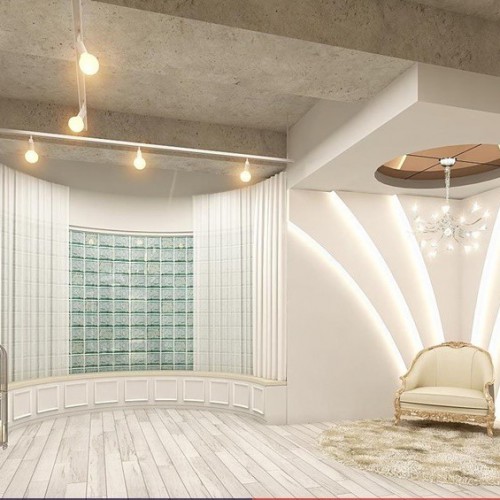 Không gian nội thất studio có kết cấu khá đặc biệt với một góc cong tròn tạo thành điểm nhấn rất bắt mắt. Trên tường cũng được trang trí bằng những bức tranh nghệ thuật nhỏ thể hiện được sự tinh tế và khéo léo của đội ngũ thiết kế.