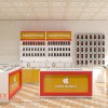 Những tủ đứng bằng gỗ MDF phủ Melamine kết hợp với kính được mài cạnh gồm nhiều đợt tủ kê sát tường giúp trưng bày được nhiều mặt hàng. Các đèn led dây phía trong có vai trò làm nổi bật những sản phẩm công nghệ hiện đại. Phần trán tủ màu vàng tôn lên bộ chữ Mica dẹt màu trắng khiến cho các tủ trưng bày thêm bắt mắt.