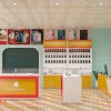Thiết kế nội thất shop điện thoại Thiện sử dụng màu vàng và đỏ tạo nên điểm nhấn. Điều này cũng thể hiện sự thống nhất xuyên suốt giữa mặt tiền và không gian bên trong cửa tiệm. Hệ thống quầy kệ phối màu ấn tượng mang tới vẻ đẹp hiện đại, thu hút cho cửa hàng.