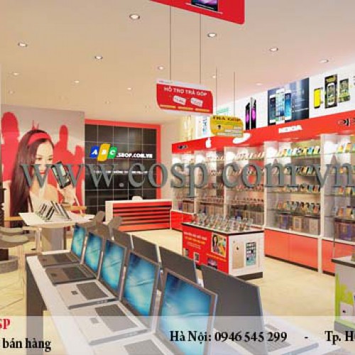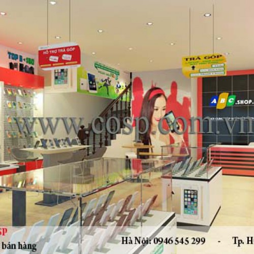 Mẫu thiết kế shop điện thoại của anh Hoàng Anh sử dụng màu đỏ để đem tới 1 mẫu thiết kế shop trẻ trung và năng động.
