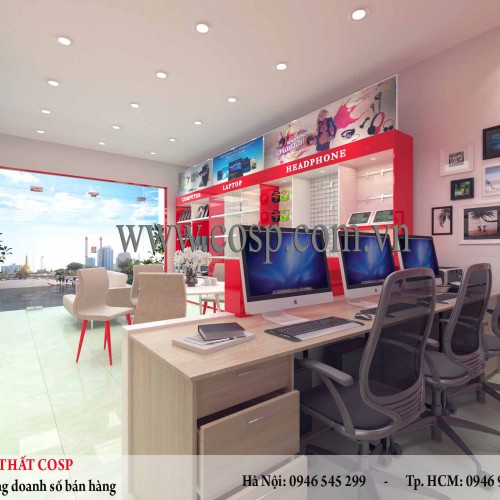 Hệ tủ này được thiết kế thông minh và chi tiết. Chúng có đèn led bên trong để soi sáng sản phẩm bên trong. Rất nhiều tranh backlits xuyên sáng được dáng ở trên tủ, chúng vừa có tác dụng quảng cáo, vừa có thể thu hút khách hàng vùa để trang trí shop điện thoại, máy tính.