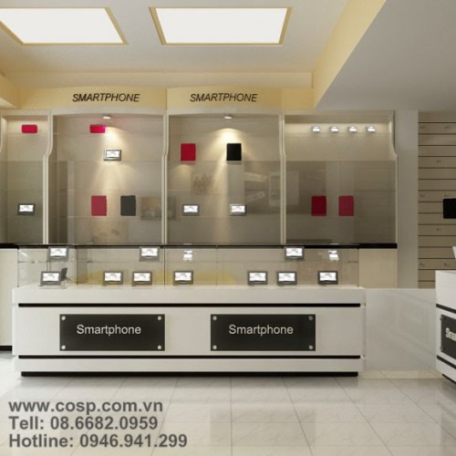 Ý tưởng thiết kế cửa hàng điện thoại: cửa hàng điện thoại độc là cửa hàng chuyên về các mặt hàng điện thoại độc trên thị trường. với không gian khá nhỏ nên việc sắp xếp tủ kệ cũng gặp nhiều khó khăn. Để giải quyết tình trang trên công ty chúng tối đã đư ra giải phát tối ưu nhất cho cửa hàng . hệ thống tủ kệ sats tường kết hợp tủ kệ trưng bày giữa nhà đã tạo cho cửa hàng không gian riêng. kết hợp với tranh ảnh trang trí để thêm phần nỗi bật cho cửa hàng .
