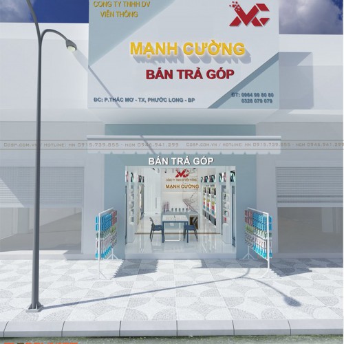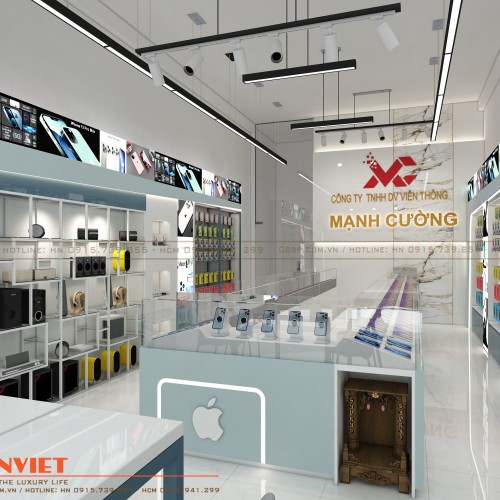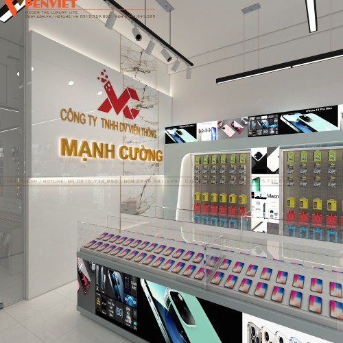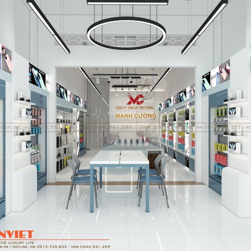 Bố trí mặt bằng khoa học trong mẫu thiết kế cửa hàng điện thoại Mạnh Cường