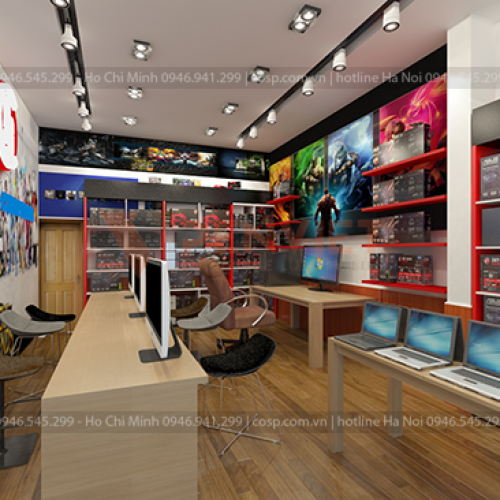 Nhận thấy việc sửa chữa , mua bán máy tính tại nơi mình sinh sống- TP Hà Giang đang trên đà phát triền. Anh Thi tìm đến nội thất Cosp để nhờ hỗ trợ , tìm cho mình một ý thưởng thiết kế shop máy tính tiện nghi nhất mà vẫn không kém phần cuốn hút. Cùng xem một vài thông tin dự án và một vài cái nhìn đánh giá cũng như hình ảnh thiết kế đẹp của shop nhé.