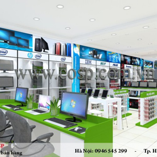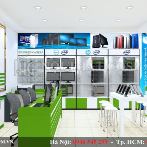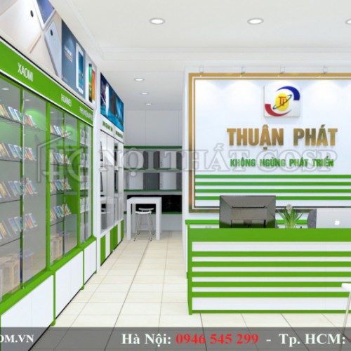 Sở hữu diện tích sàn lên đến 80m2, dự án thiết kế cửa hàng máy tính - điện thoại Thuận Phát có nhiều lựa chọn hơn cả cho các thiết kế nội thất bên trong. Với các vị trí và mục đích sử dụng khác nhau, các kiến trúc sư đã lắp đặt từng loại kệ tủ sao cho phù hợp nhất.