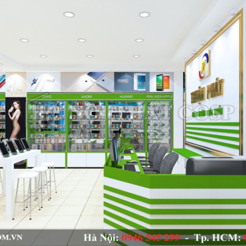Shop có vị trí kinh doanh thuận lợi nằm trên mặt tiền đường chính có nhiều người quan lại sẽ giúp cho shop của chúng ta dễ dàng tiếp cận với khách hàng. Và thiết kế cửa hàng điện thoại có mặt tiền bên ngoài đẹp ấn tượng và nổi bật sẽ tạo ấn tượng tốt trong mắt của khách hàng và làm thu hút nhiều khách hàng đến mua sắm.