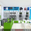 Bố cục màu sắc tổng thể đẹp mắt với cách bố trí và trưng bày các sản phẩm thật khoa học và logic. Thiết kế chọn tone màu trắng cho màu nền của không gian, kết hợp với tone màu xanh tạo điểm nhấn màu sắc cho không gian kinh doanh của mẫu thiết kế shop điện thoại