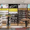 Đây là một mẫu thiết kế shop điện thoại, phụ kiện điện thoại cực kỳ cứng cáp. Màu sắc đen trắng cùng với lối sắp đặt nội thất chỉnh tề đã khiến cho shop phụ kiện này có vẻ đẹp nam tính.