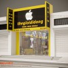 Thiết kế shop điện thoại Mạnh Trình Mobile sử dụng khung sắt gia cố để nâng đỡ hệ thống biển hiệu giúp đảm bảo độ bền trước những tác động của thời tiết.