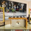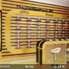 Sự kết hợp của màu vàng và đen khiến không gian shop trở nên tối hơn nhưng nhờ sự thiết kế tinh tế của kiến trúc sự đã sử dụng trần nhà màu trắng khiến cho không gian trở nên hòa hợp hơn. Kệ trưng bày sản phẩm tại cửa hàng được sử dụng kết họp tủ đứng và tủ ngang cùng kết hợp. Với chất liệu được thiết kế là gỗ MDF phun sơn O7, Melamin An Cường.