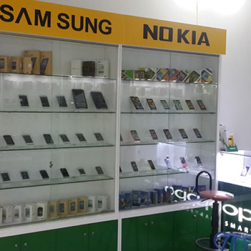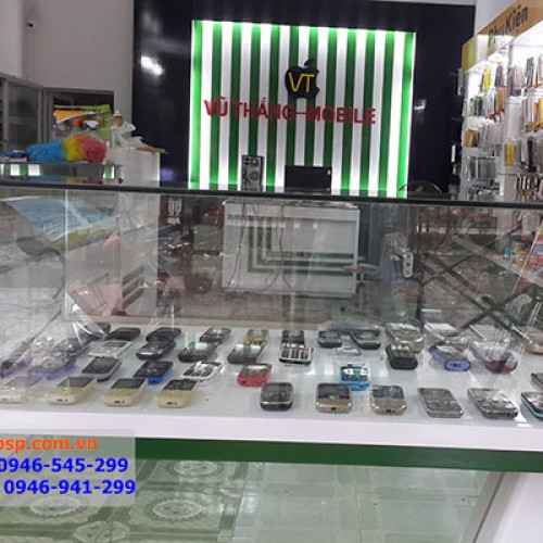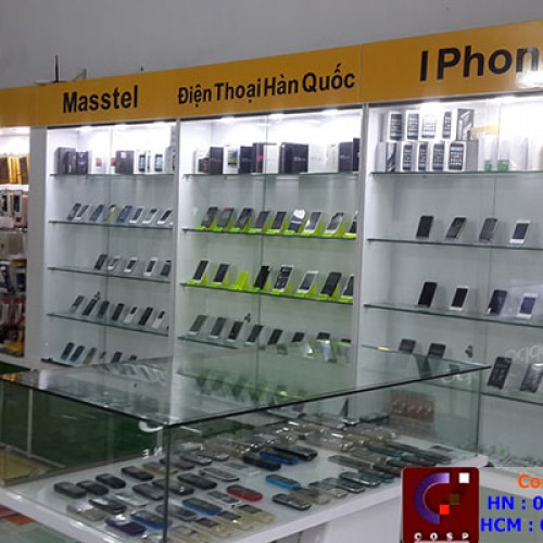 Shop có không gian khá rộng và thoáng nên bên trong, các kiến trúc sư sử dụng nhiều tủ, kệ điện thoại. Giúp Anh Thắng có thể sắp xếp được những loại sản phẩm khác nhau riêng biệt. Tạo sự thuận lợi và dễ dàng cho khách hàng khi tới xem là mua sắm.