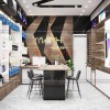 Quầy thanh toán được đặt ở vị trí trong cùng của cửa hàng với kiểu dáng chữ L vuông vắn và có tính thẩm mỹ cao. Được kết hợp từ 2 màu sắc chủ đạo, mặt trước của quầy thu ngân sử dụng chủ yếu gam màu trắng với tên thương hiệu từ vật liệu alu dẹt màu đen nổi bật. Mặt bên cạnh được thiết kế dạng nan cách điệu với tên shop vàng gương. Để hai mặt quầy có sự kết hợp hoàn hảo và đồng nhất với nhau, các kiến trúc sư đã tính toán chi tiết và đưa ra phương án rất phù hợp như hình ảnh thiết kế dưới đây.