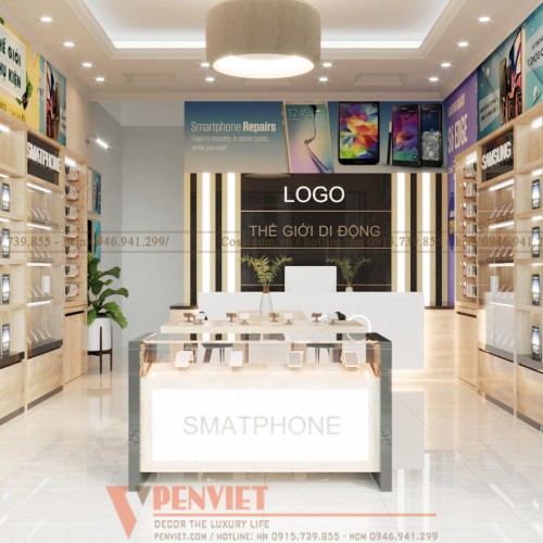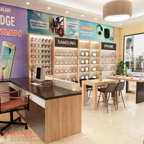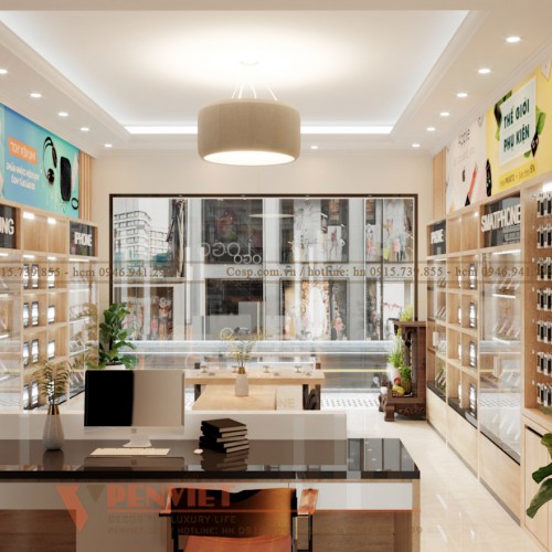 Trên đây là những hình ảnh thiết kế shop điện thoại Phú Quý Store và mô tả chi tiết về từng nội thất bên trong cũng như bên ngoài. Nếu bạn muốn thiết kế shop điên thoại xin hãy liên hệ với Nội Thất Penviet nhé.