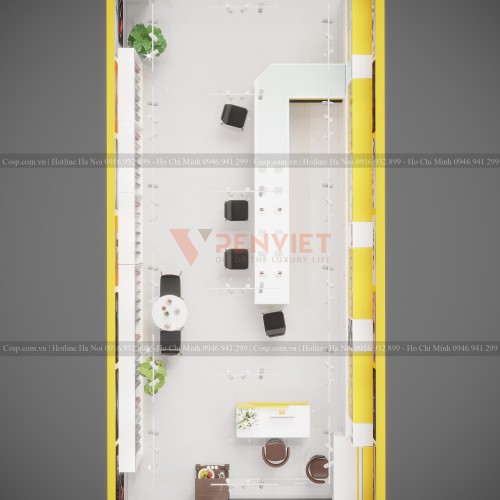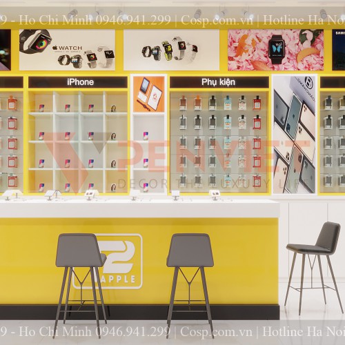 Chủ shop điện thoại T2 Apple là một bạn nữ còn rất trẻ và mở cửa hàng này đã lâu. Sau khi thấy những cửa hàng bên cạnh đều có không gian bán hàng rất đẹp, chị Thư đã quyết định thay đổi diện mạo mới cho shop điện thoại của mình. Cùng hợp tác với Penviet trong dự án thiết kế shop điện thoại T2 Apple, chị Thư rất hài lòng khi nhận được sản phẩm. Cùng xem những hình ảnh 3D của shop điện thoại T2 Apple sau khi được cải tạo nhé.