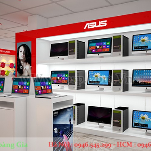 hệ tủ giữa nhà chắc chắn, đây cũng là loại tủ sử dụng nhiều trong các mẫu thiết kế cửa hàng điện thoại của chúng tôi.