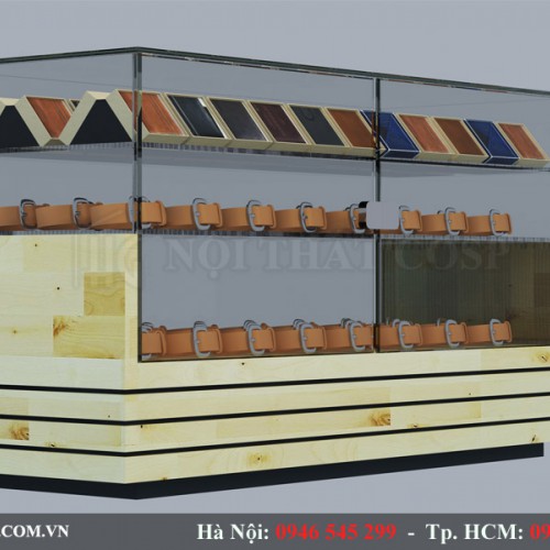 Không chỉ tận dụng hiệu quả hết lợi thế là khơi gợi được cảm giác ấm áp. Chất liệu gỗ keo ghép thanh còn thêm cuốn hút bởi nét thiết kế, cách phối hợp với vật liệu khác. Nhờ thêm kĩ thuật sử lí bề mặt điêu luyện, nét gỗ dường như đã trở nên lịch lãm hơn, những chiếc kệ, giá. Tủ trưng bày cũng vì thế mà gia công dễ dàng và đạt được nhiều tiêu chí về chất lượng cũng như kí thuật. Nét sang trọng được đề khá cao trong không gian shop phụ kiện này.