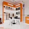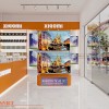 Nhằm tạo mối liên kết giữa nội thất và ngoại thất, nội thất shop điện máy sử dụng tông màu trắng và cam chủ đạo. Phối hợp tỷ lệ màu sắc tinh tế với tỉ lệ màu trắng nhiều hơn giúp không gian trông thoáng và rộng hơn. Tông màu cam nóng tạo sự thu hút và ấn tượng mạnh mẽ với khách hàng.